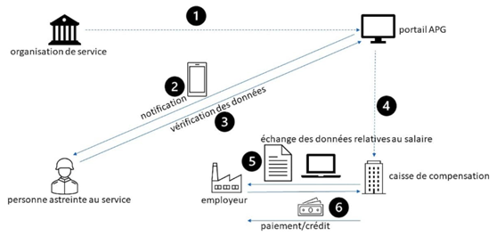 - La caisse de compensation calcule l’APG et effectue le paiement ou la bonification à l'employeur ou à l’astreint.